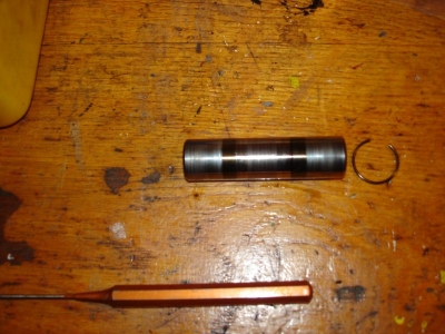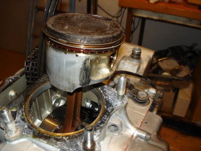Hier noch ein Bild des Kolbens. Am Hemd sind vorne und hinten Reibspuren. Die Laufbuchse sieht in Ordnung aus.